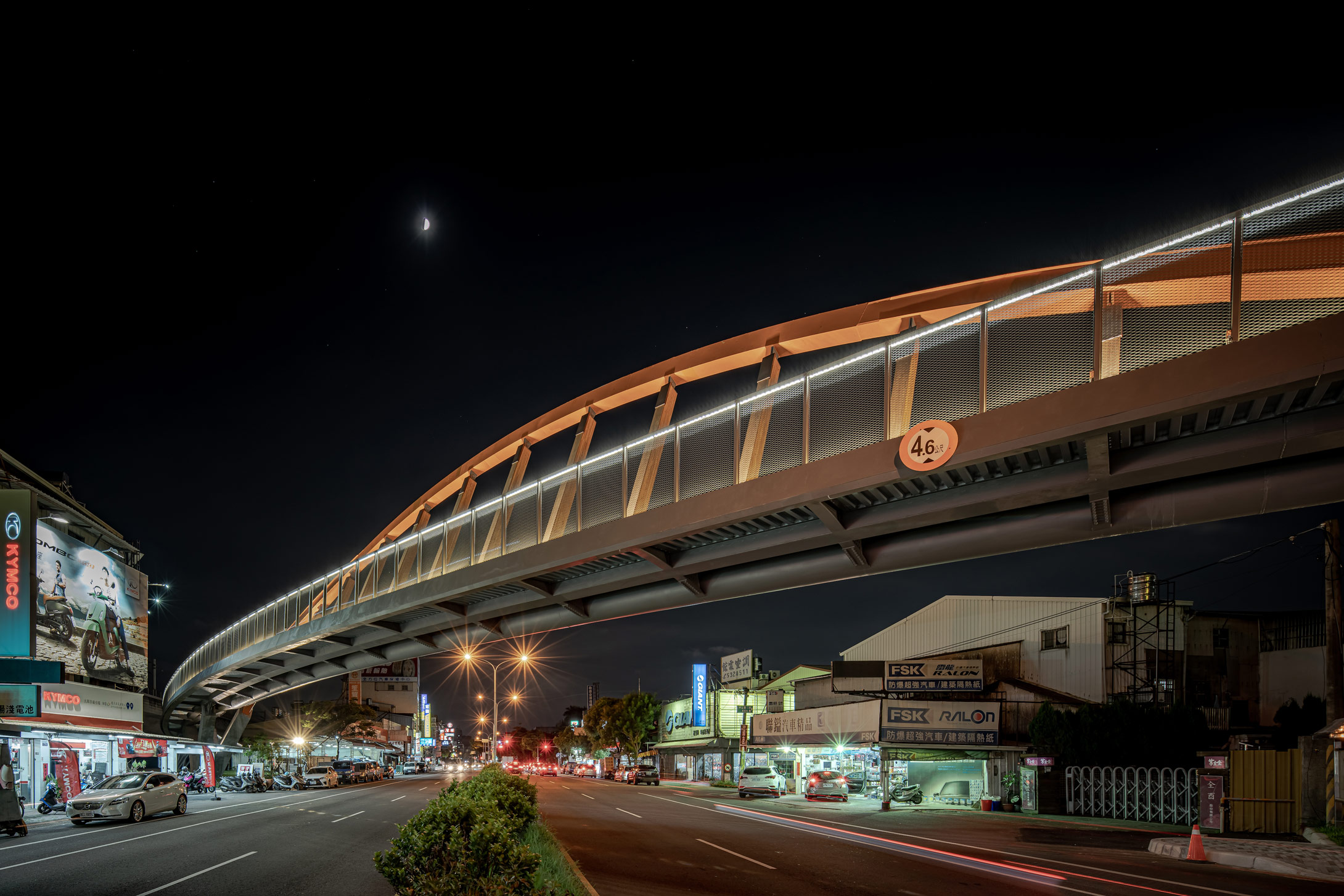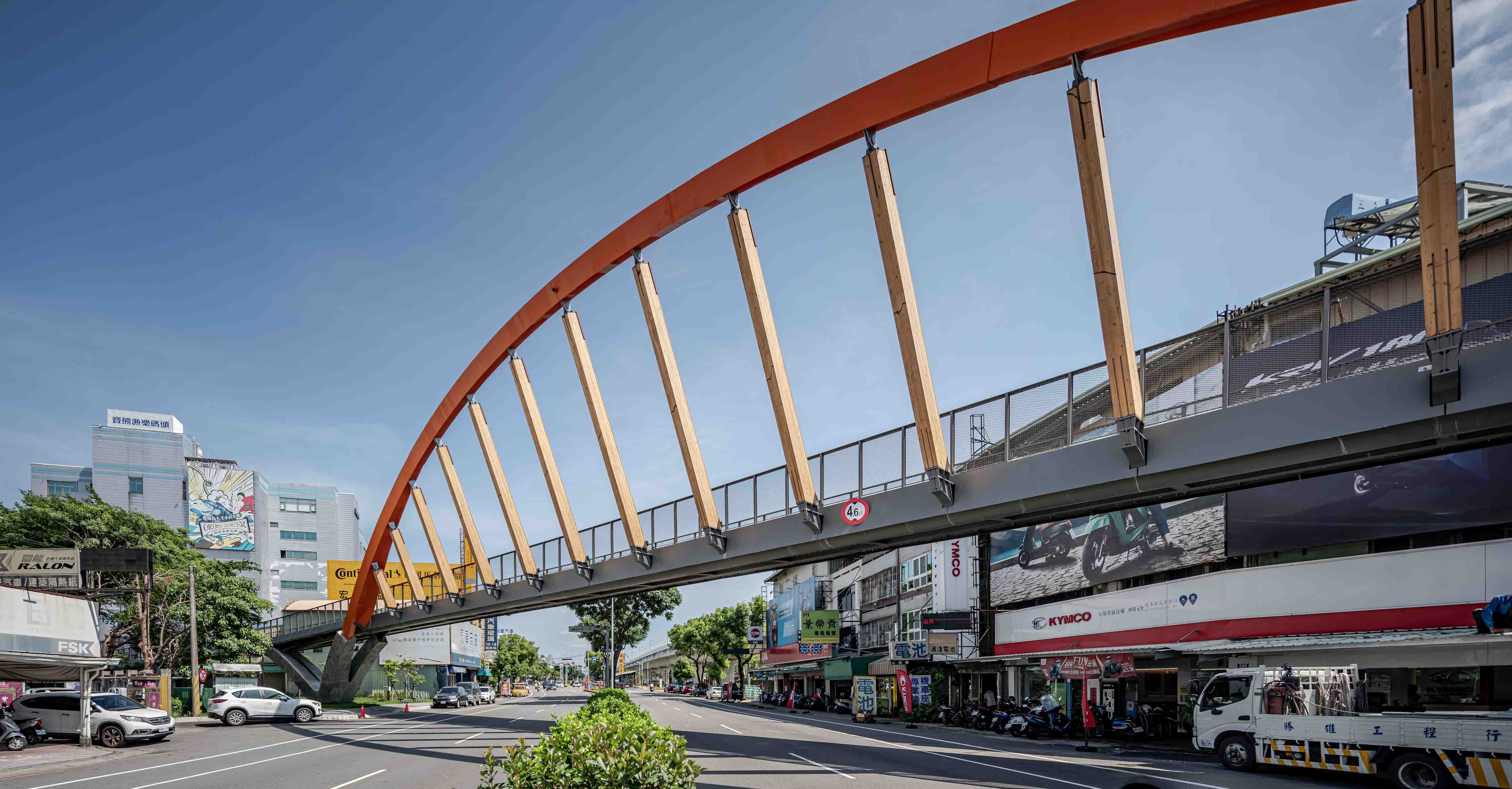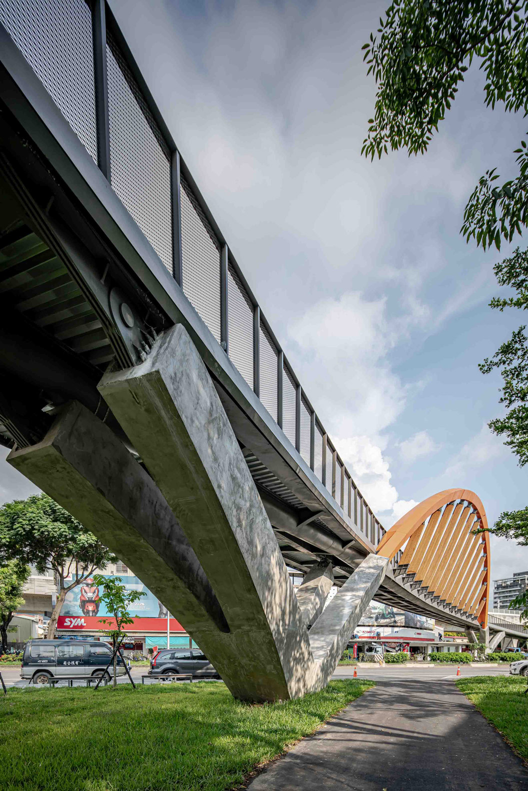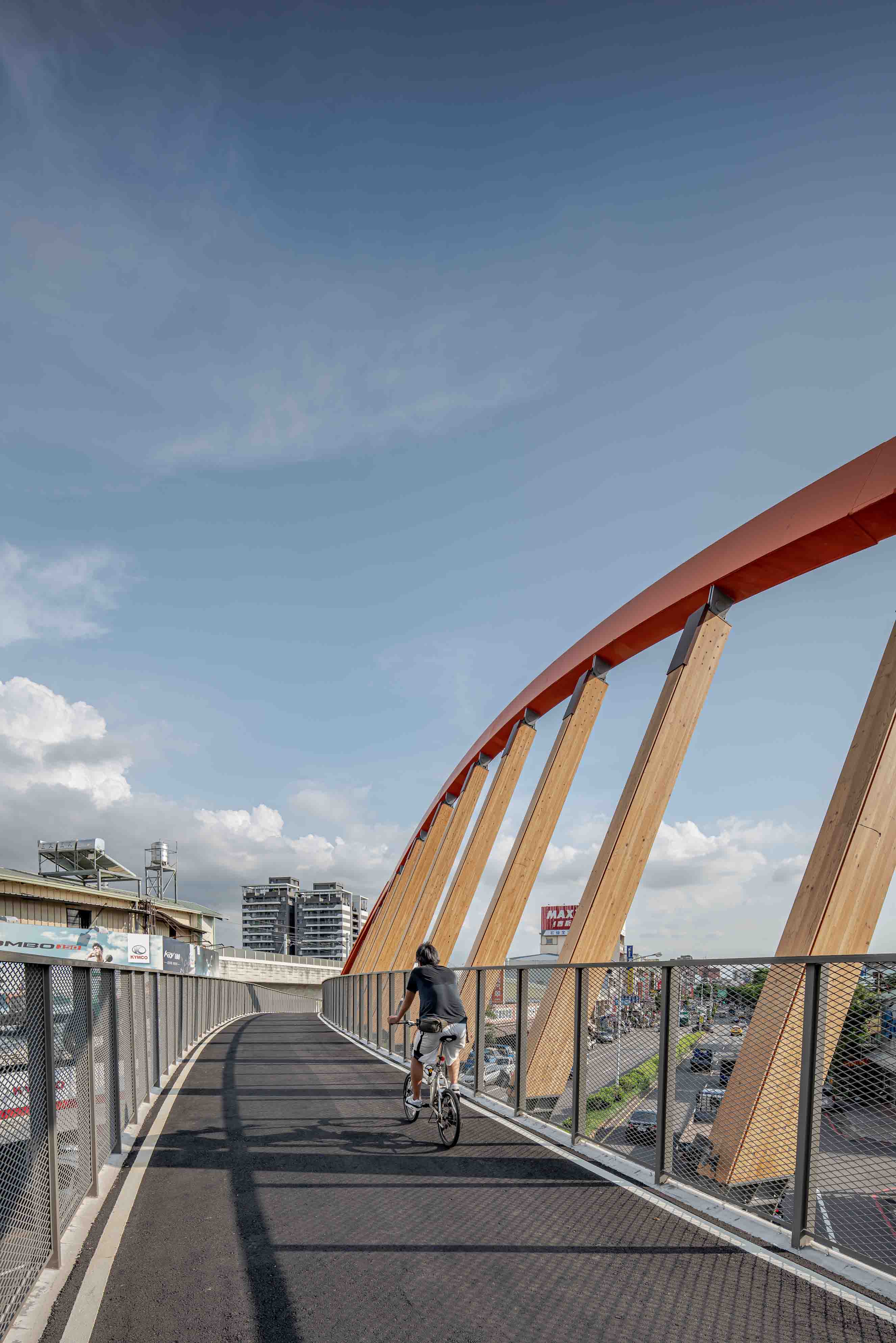 俐落的斜拱曲線,引領騎士穿越城市綠意